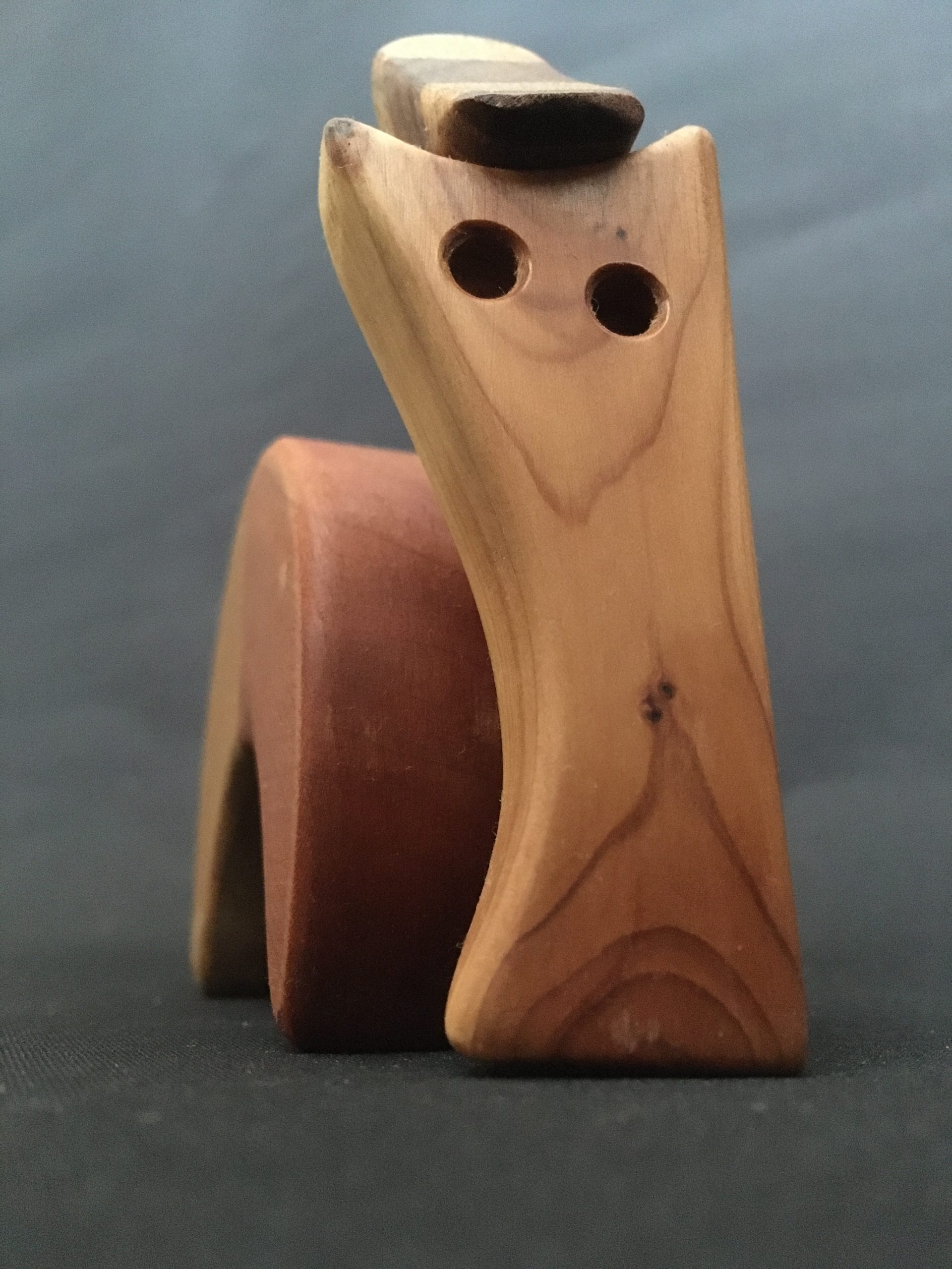 The Wacky Woodies are my best way to use all the ridiculously short off-cuts that I kept for years. You will find oak, cherry, maple, lacewood (London Plane), yew, sapele, ash, walnut, olive ash, mahogany, utile, cedar, beech, willow, eucalyptus, spalted beech, iroko, bamboo, sycamore, pine, and (hu)man-made boards, such as chipboard, plywood, and M.D.F.